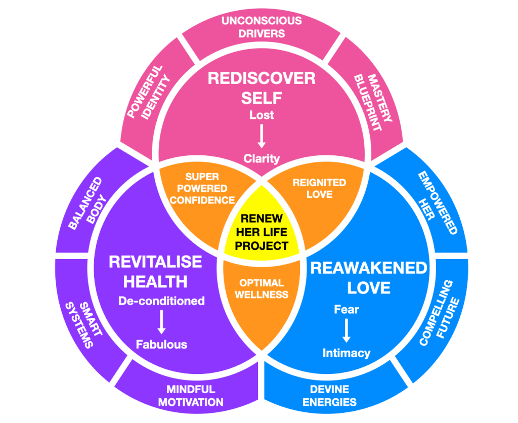 In my ReNewHerLife Coaching Program there are 3 major outcomes my clients get from this program and they are: Super Powered Confidence, Reignited Love and Optimal Wellness.